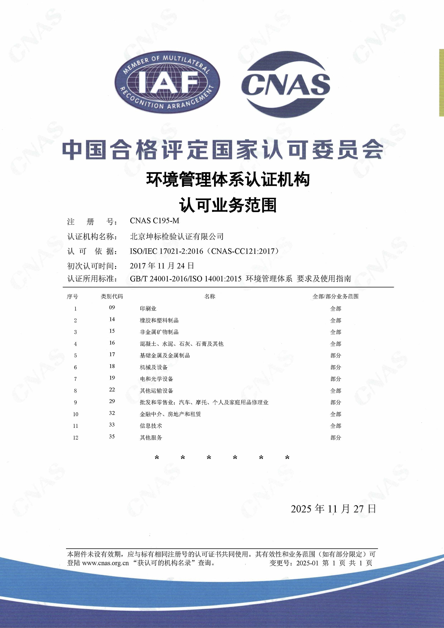 | QMS認可業務范圍(明細) | EMS認可業務范圍(明細) |